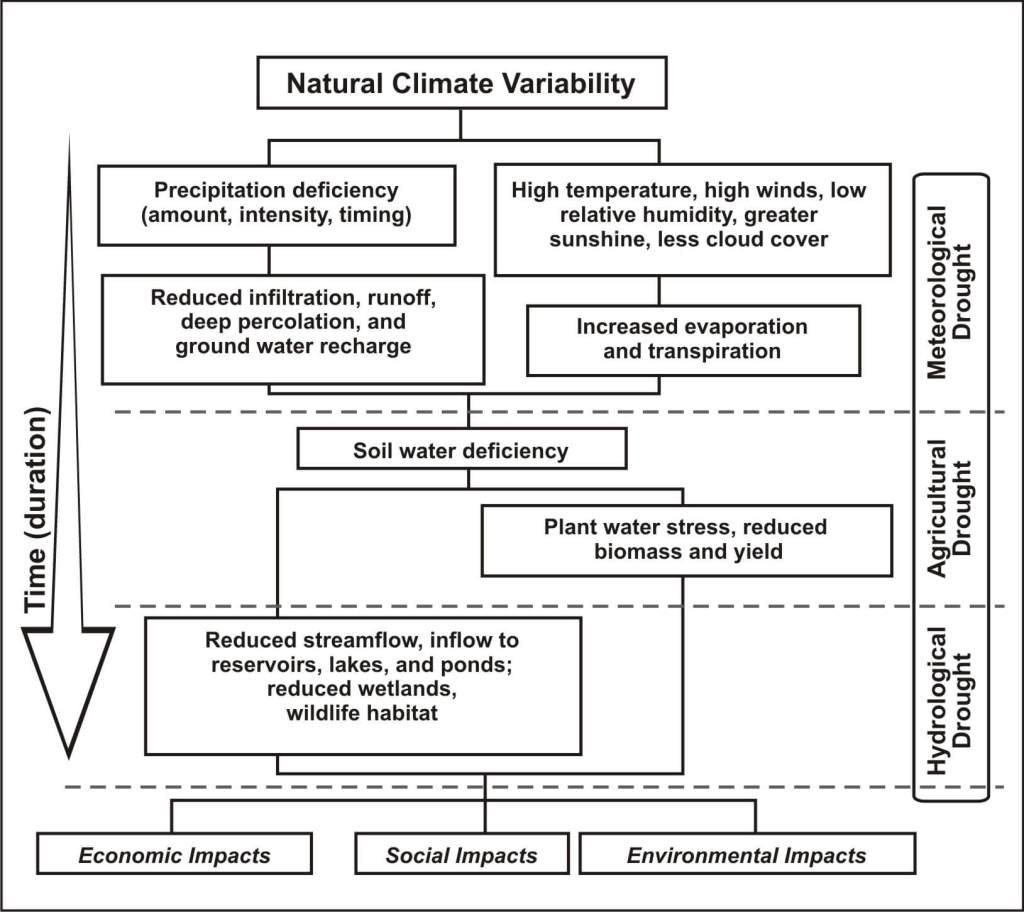 Wilhite and Glantz1 categorized the definitions in terms of four basic approaches to measuring drought: meteorological, hydrological, agricultural, and socioeconomic. The first three approaches deal with ways to measure drought as a physical phenomenon. The last deals with drought in terms of supply and demand, tracking the effects of water shortfall as it ripples through socioeconomic systems.