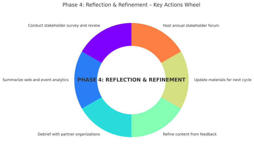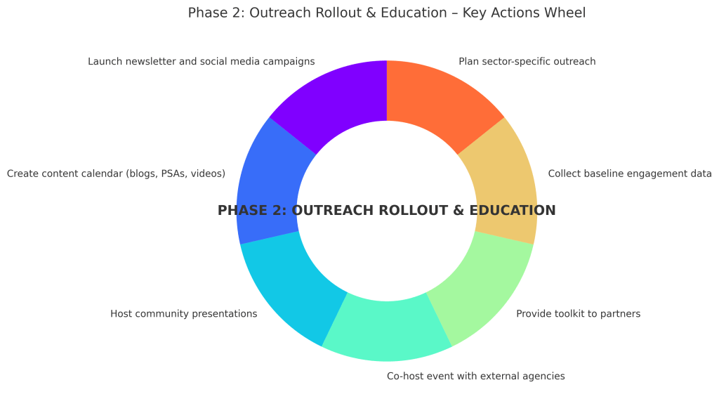 Goal: Distribute educational materials, expand engagement, and build stakeholder confidence